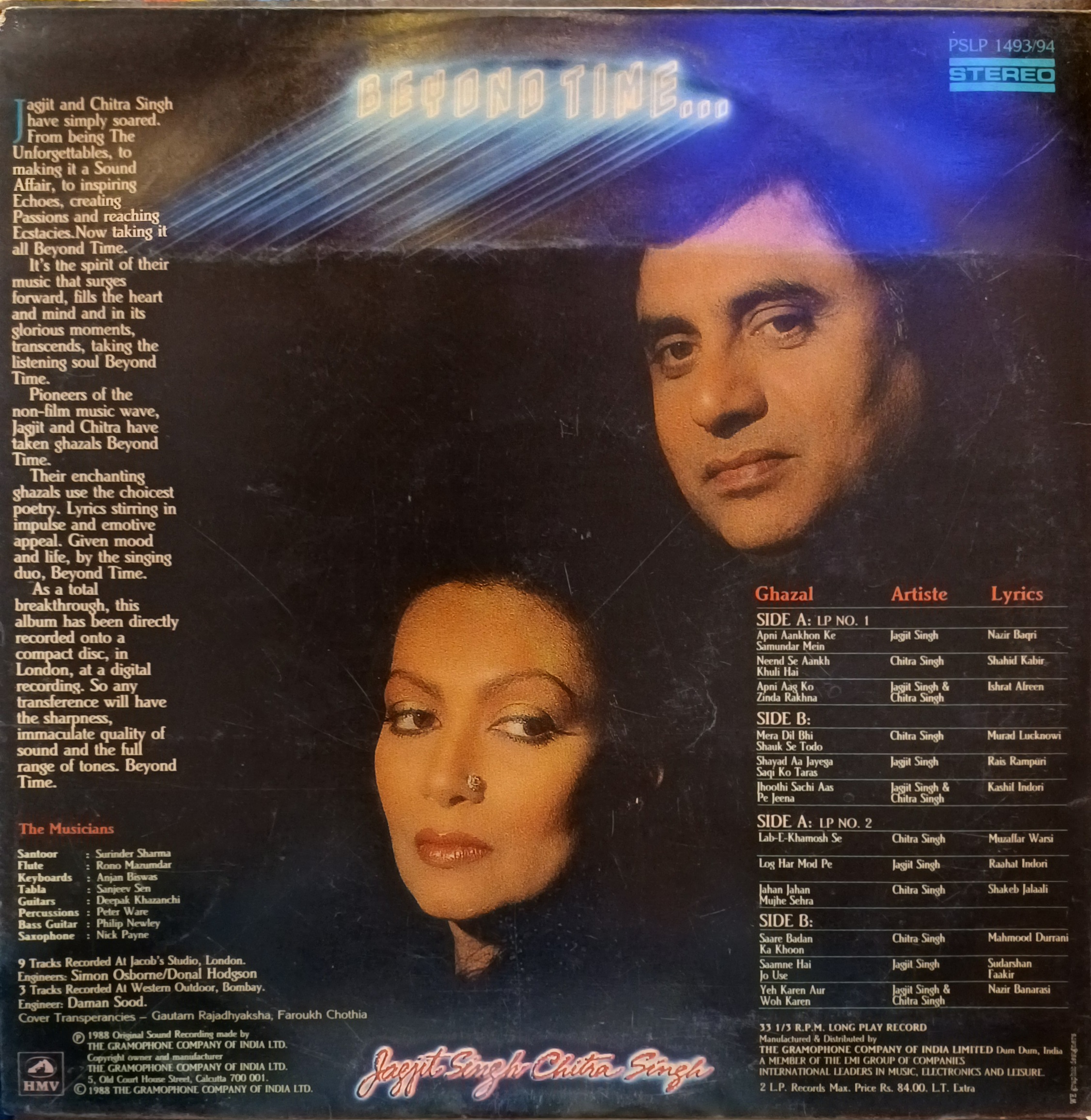 Beyond Time – (Jagjit Singh) Vinyl 2lp Record Set (1988)