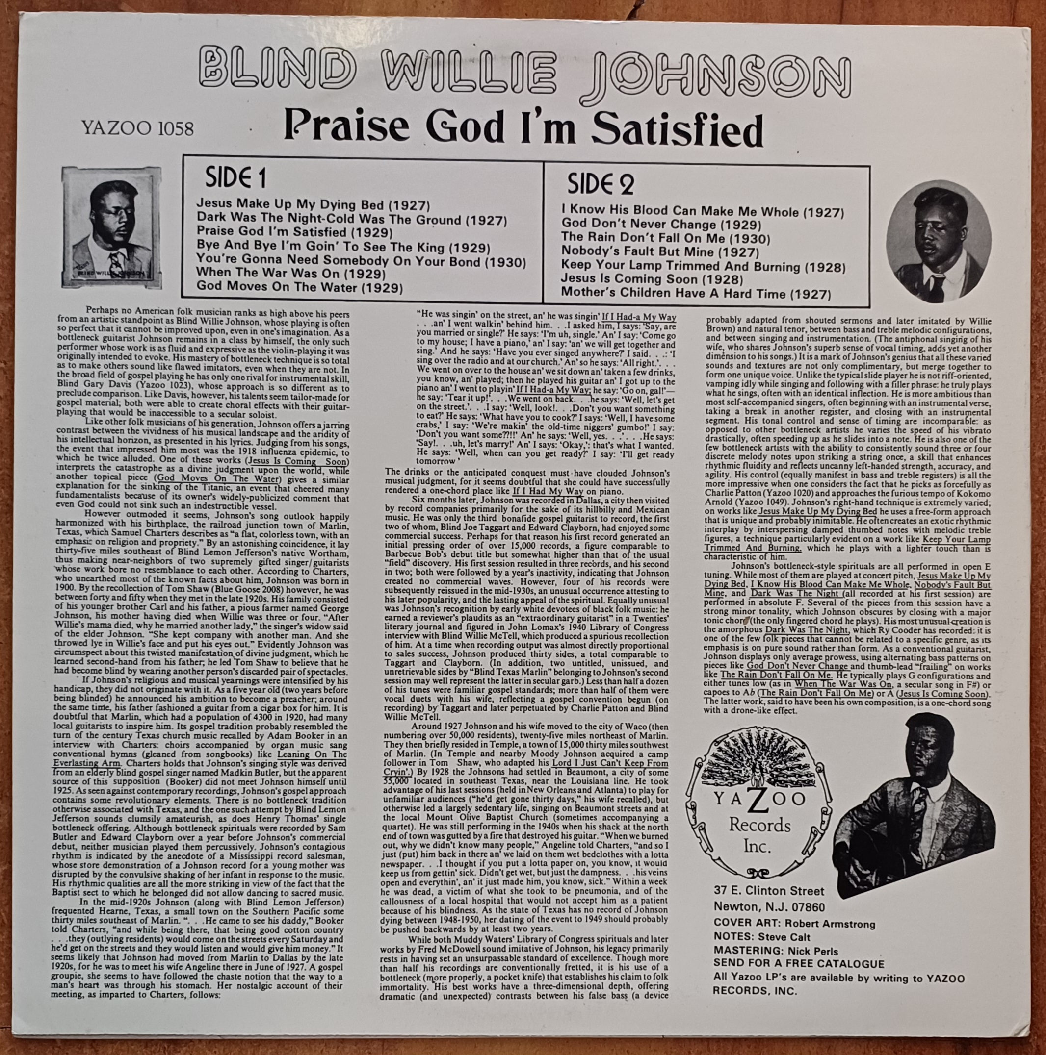 Blind Willie Johnson – Praise God I’m Satisfied (Vinyl Lp Record – Jazz)