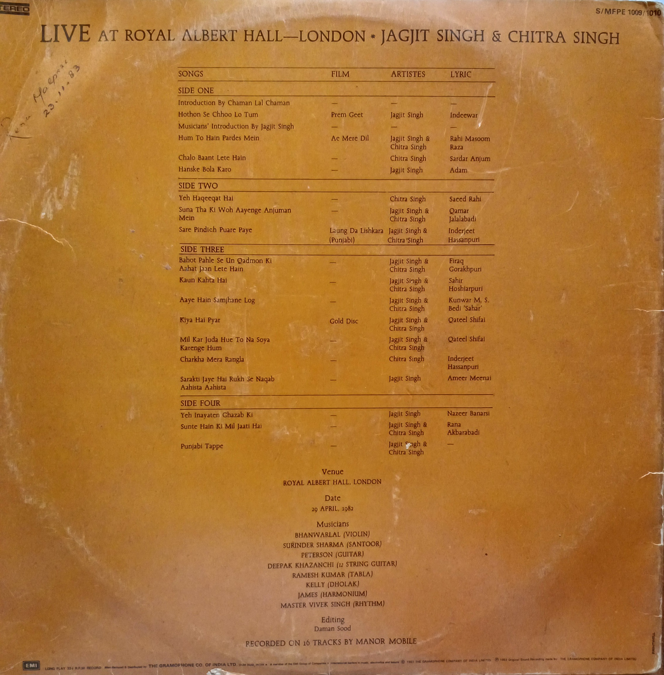 Live At Royal Albert Hall London – (Jagjit Singh & Chitra Singh) – 2lp Set