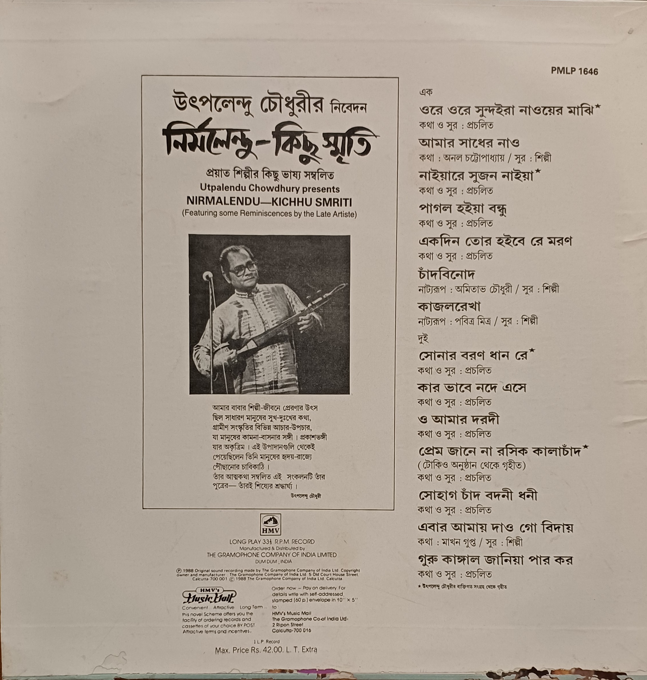 Nirmalendu Chowdhury – Bengali Folks Songs (1988) LP Record