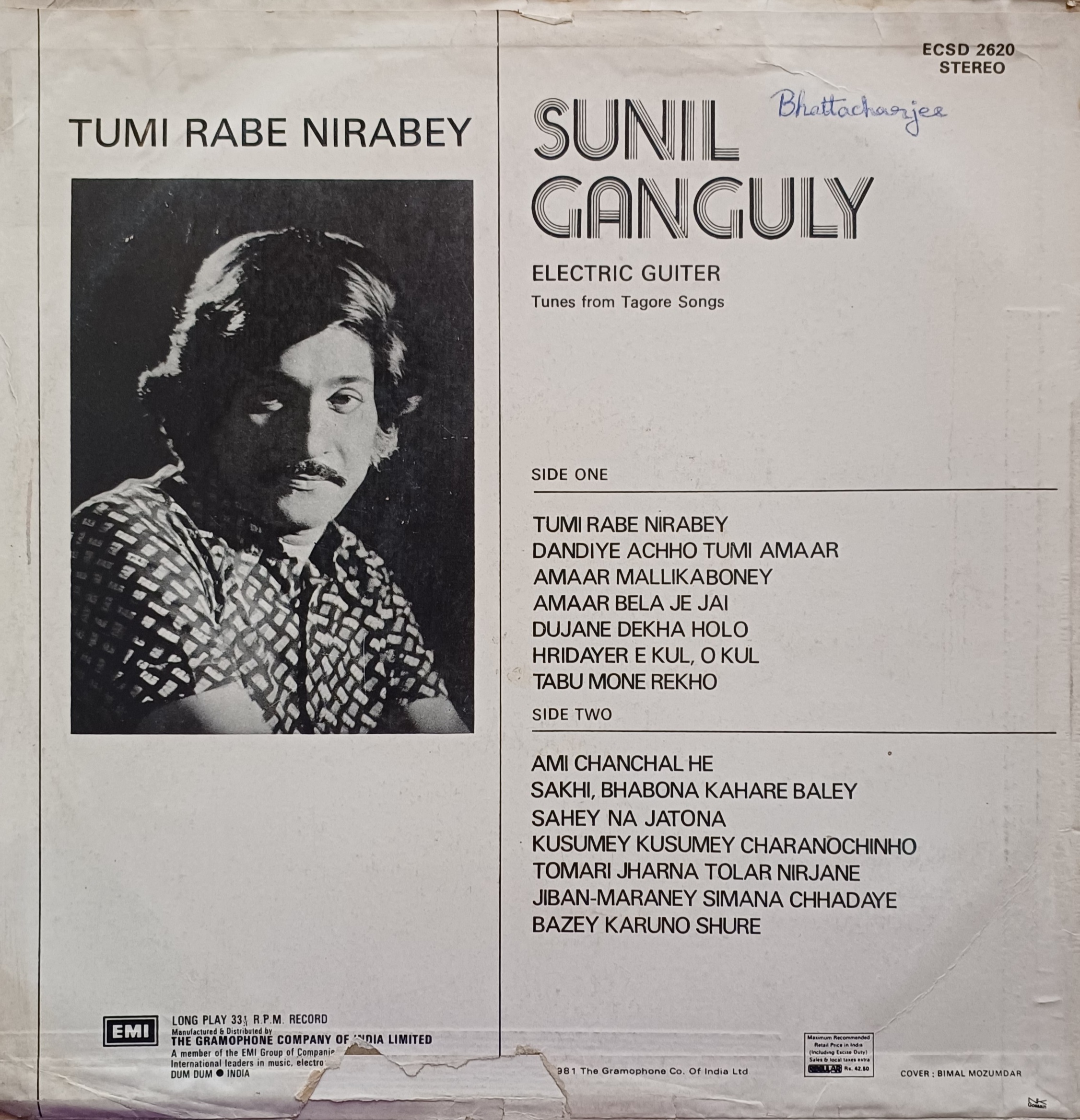 Sunil Ganguly Electric Guitar Tunes From Tagore Songs – Bengali (1981) LP Record